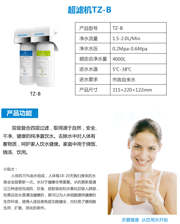 額定凈水量:4000L 進(jìn)水要求:市政自來(lái)水